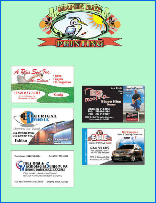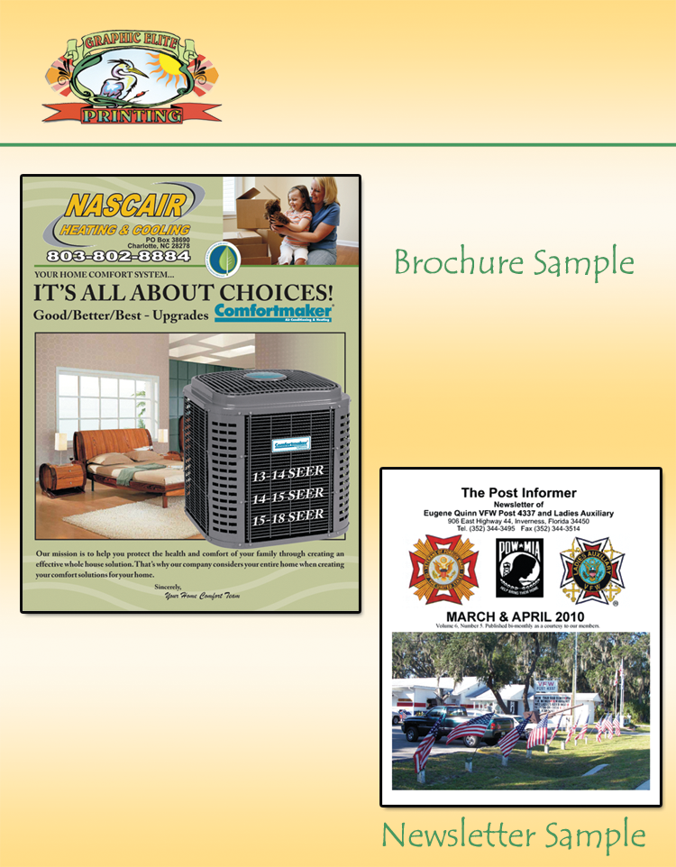 Here are some samples of what Graphic Elite Printing can provide for all of your business needs. Let our "Customer Friendly Quality Team" from Design to Print assist you. Call us or stop on in. You'll be happy you did. Quality & Service with a "Smile" ! |